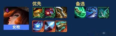 女枪的装备方面:女枪是可以带两件比尔装备的,不过通常情况下都是带一件幸运达布隆金币;剩下两件补充输出和启动,也可以考虑双输出,女枪蓝条足够短;输出装最好是无尽,第三件可以是青龙刀,巨杀,羊刀