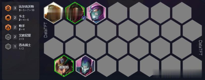 这套阵容开局有卡牌就能玩,给卡牌1.5件装备就能解锁男枪,在小D一手1费卡俄洛伊就能开出3比尔;可以在黑市买两星男枪带装备打工过渡